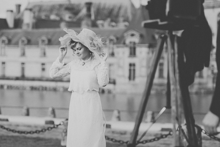 “I am sure you are wondering if this is a wedding. Well, it is not! It is our passion though to create vintage photographs with ourselves as the actors of “La Belle Époque”. For about 3 years now, at least once a month, we dream, imagine, photograph and enjoy getting away from our modern world. It is something that I haven’t seen any other couple do, except rarely or on special occasions. We do this for ourselves, and, when we have the opportunity, we request the services of a good photographer – like JolieDee – so we can be more free by not having to bother with our own cameras. 😀 I am excited and honored by the photos Odrida took and that she lives in Paris, a city full of beauty and history. 🙂 We will surely rely on her photographic gift again for a future awesome session of vintage photography. Every session is planned with love, passion down to the very details of the era, like the objects, places, hair styles and editing. We like to bring to life all eras, but, for now, our definite favorites are the 1900s. Is the best inspiration for a romantic wedding where white, lace, pure elegance and respect are intertwined with beauty and love…”