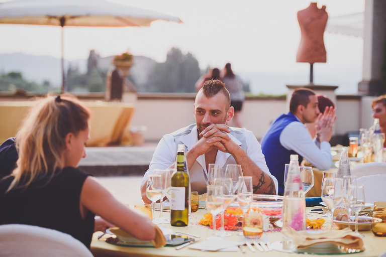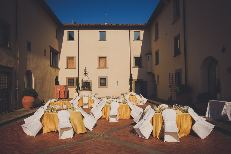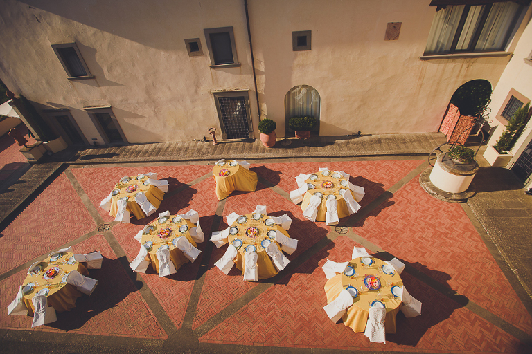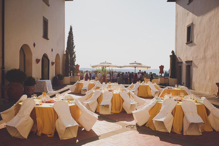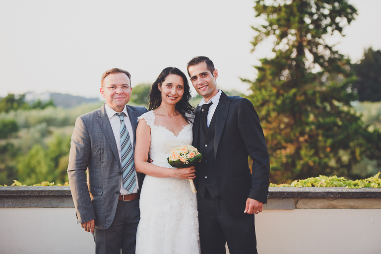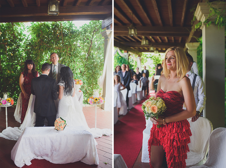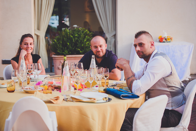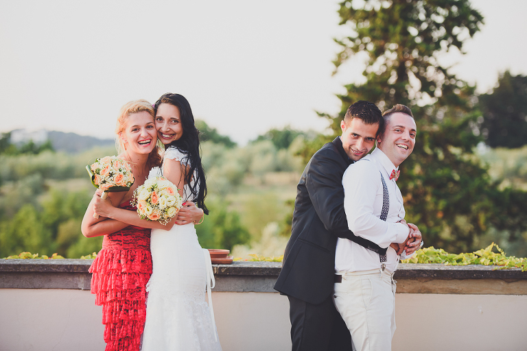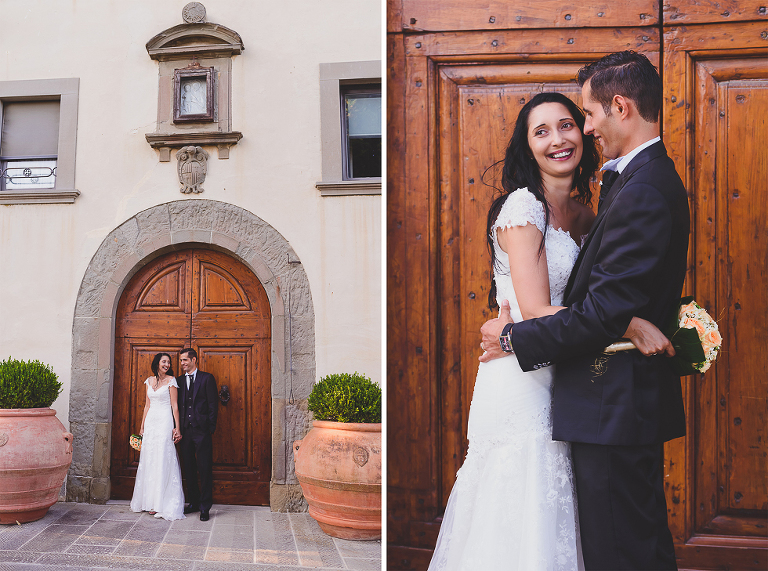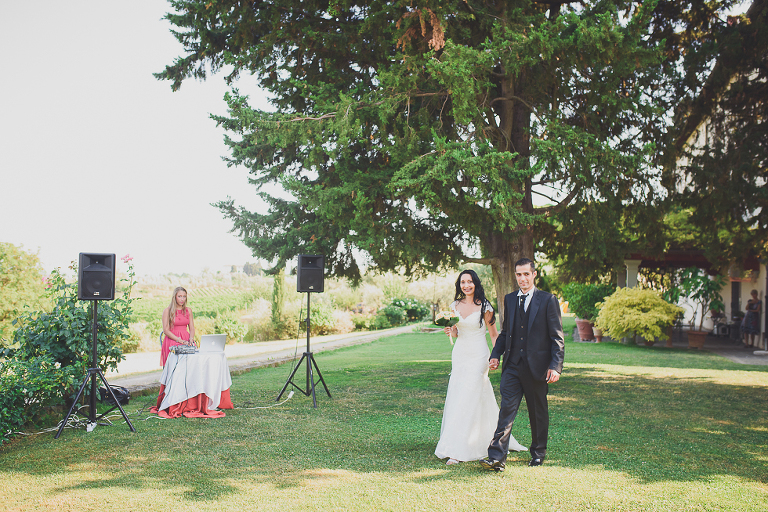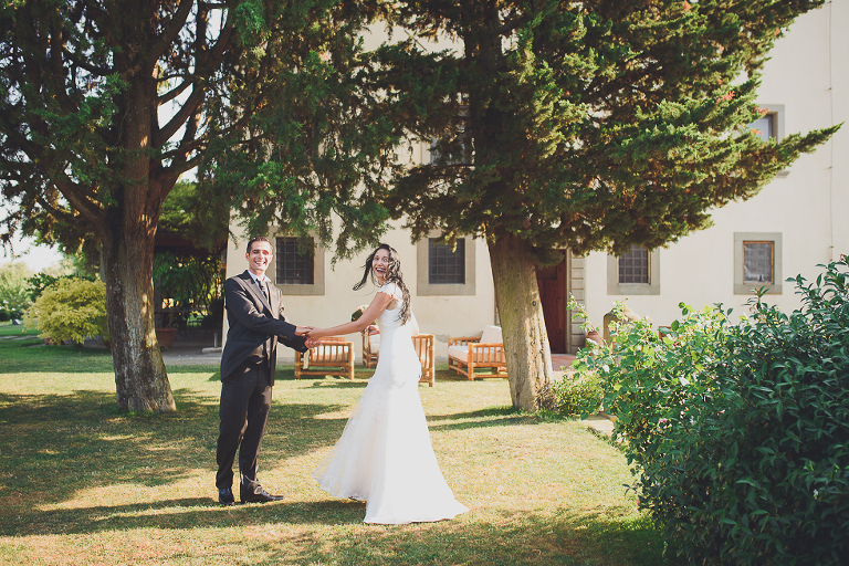 The road from Florence to Villa Mocale is a dream. You drive on winding paths, among vineyards and olive orchards, under the blue clear sky where even the sun shines brighter. The people are friendlier too and lovelier than usual. When you arrive at the top, and look around at the vine covered hills surrounding you, you really start wondering why did it take you so long to get to this wonderful place named Tuscany. And you really start thinking of how lucky Manu and Simona are, because they live there and have their wedding in such a marvelous place. 🙂